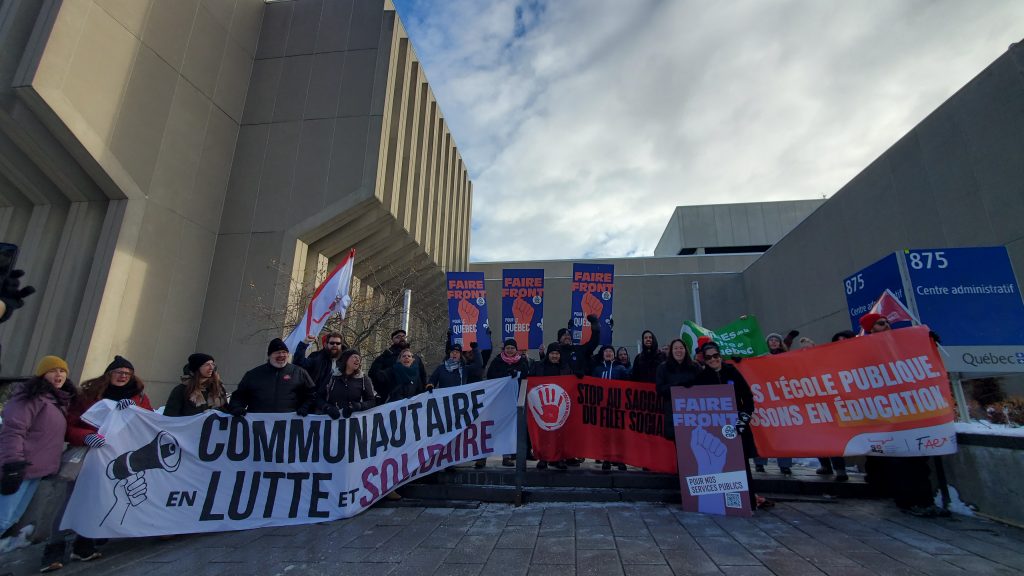 Alors que le gouvernement annonce des compressions et qu’un gel des subventions a été décrété par le Conseil du trésor, un nouvel affaiblissement du filet social et une aggravation des inégalités sont à craindre. Face à l’ampleur et la complexité des crises sociales qui frappent le Québec, des acteurs et actrices du milieu syndical et communautaire de Québec ont joint leur voix à celles de dizaines d’autres groupes du Québec qui n’ont pas hésité aujourd’hui à passer à l’action afin de réclamer un véritable changement de cap.